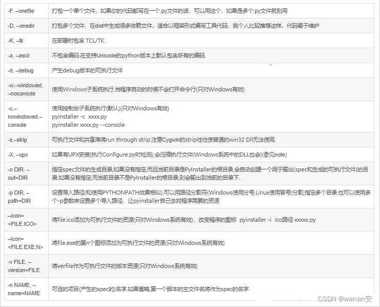 pyinstaller 命令速查