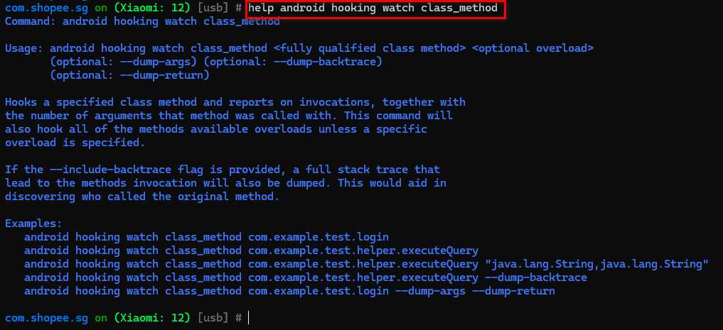 根据类名搜索内存中已经被创建的实例,列出 handle 和 toString() 的结果。ClassDump:plugin wallbreaker classdump <classname> [--fullname]