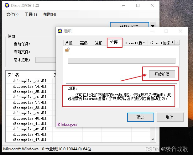 扩展程序之后才能下载C++组件运行库,扩展成功之后回到主页面点击检测并修复即可。