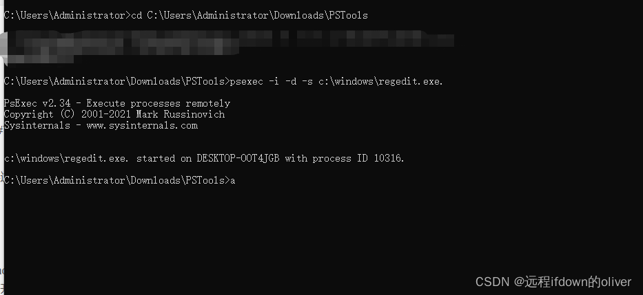 In the command shell, enter psexec -i -d -s c:\windows\regedit.exe. This causes Windows to run the registry editor with the permissions of the System account – an account even more powerful than Administrator.(执行命令,打开注册表编辑器,这和直接打开不同之处在于,这样打开操作权限会高些,避免了你勾选权限之后没有生效,或者还原回去的问题)