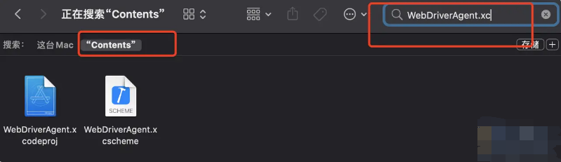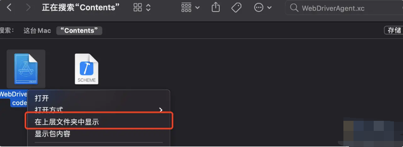 上面这种办法我自己试了试是不行了,我是使用下面这种: 先安装好Appium,电脑-应用程序->Appium.app->右键-显示包内容->Contents,然后搜索WebDriverAgent.xcodeproj,如下图: