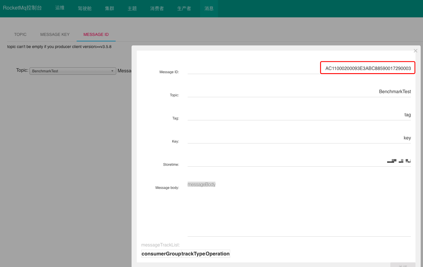 选定topic,输入对应的messageID进行查询。