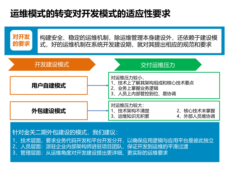 对外包项目要求代码与平台分离,派驻架构师确保运维知识转移。