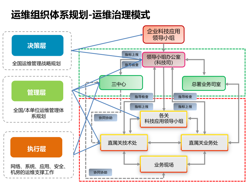 设立三级运维组织(科技司→核心节点/区域中心→关区),明确科技司统筹规划、核心节点技术辐射、关区落地执行的职责。