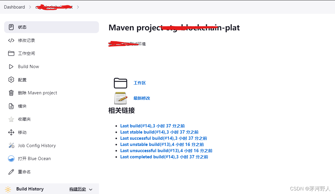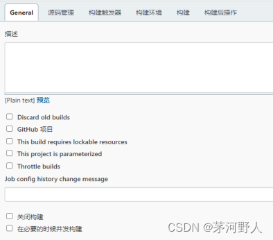项目名称: 是刚才创建构建任务步骤设置的,当然在这里也可以更改。