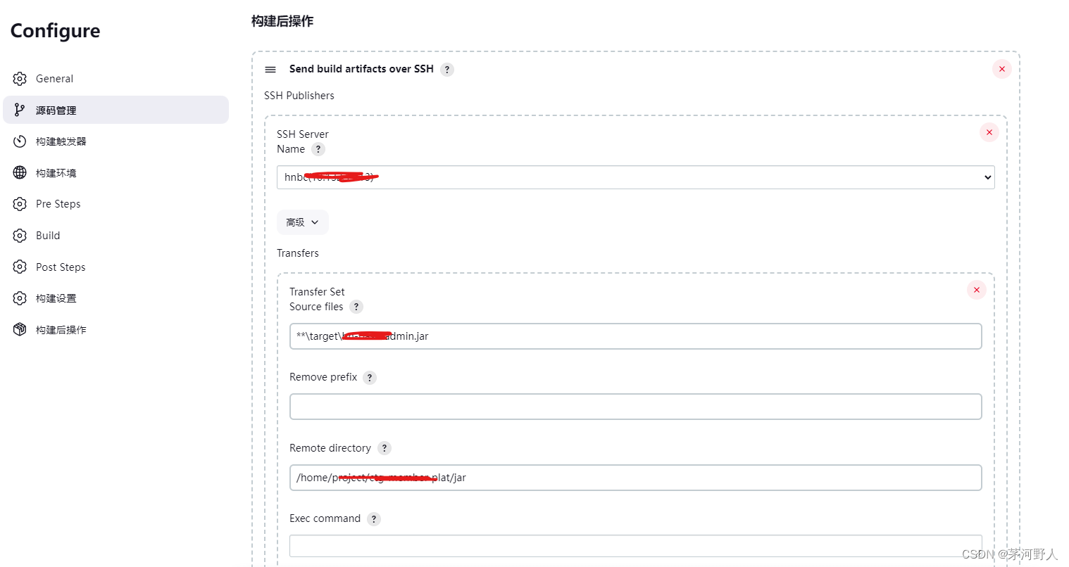 接下来需要在Jenkins管理配置上配置上连接目标服务器的操作。