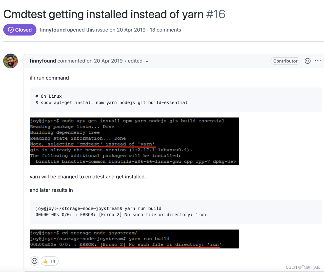 yarn打包有问题,可以使用sudo apt-get install yarn