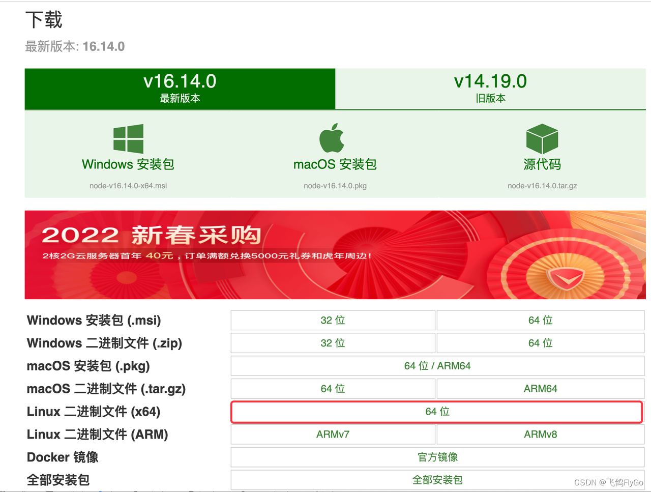 $ wget https://npmmirror.com/mirrors/node/v16.14.0/node-v16.14.0-linux-x64.tar.xz