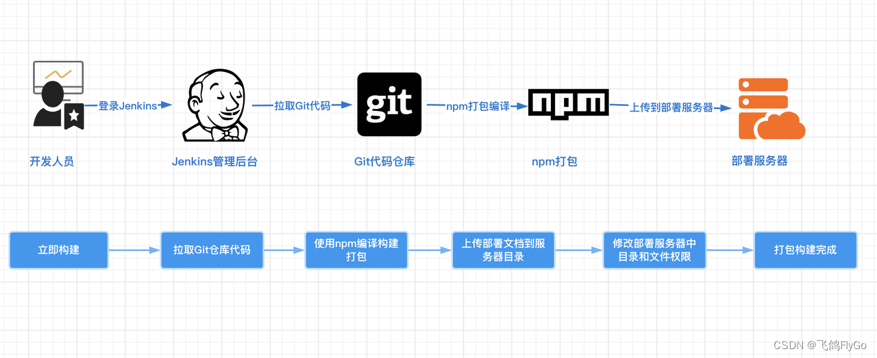 Jenkins自动化运维-打包部署Vue前端项目(1):搭建打包部署环境。总体步骤流程概览;环境为CentOS7 系统环境,安装node.js 和 npm;yarn打包命令无法使用问题及目录权限问题。