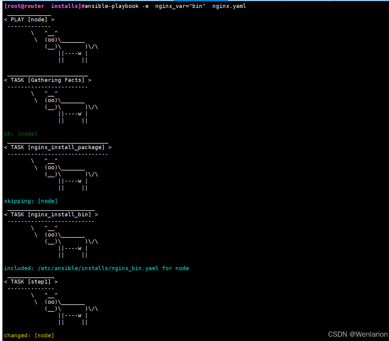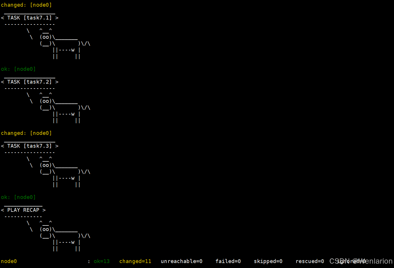 creates、removes:根据远程主机上文件情况决定脚本是否执行,与前两个模块类似,用于避免不必要的脚本重复执行。