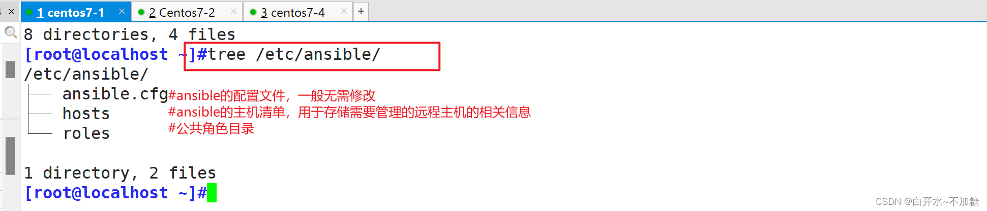 tree /etc/ansible/ #树形结构展示ansible目录