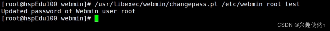 4)执行命令重置密码: /usr/libexec/webmin/changepass.pl /etc/webmin root test