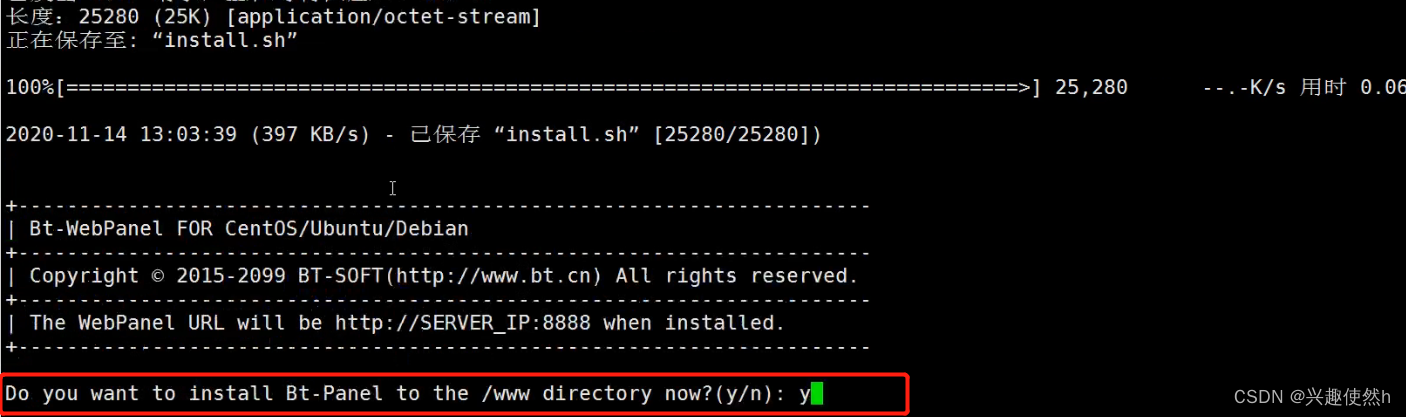 如果有需要确认安装的直接输入 y 就可以