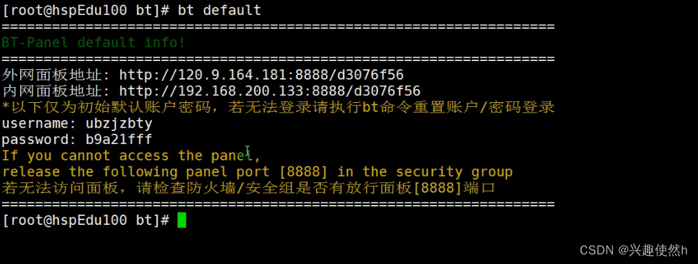 18.2.4 如果 bt 的用户名,密码忘记了。使用 bt default 可以查看