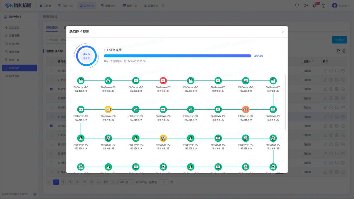 通过自定义巡检策略,对IT设备的运行情况进行统计和报表生成,并可自定义预设时间向指定邮箱发送巡检结果报表,实现对设备的定期检查,把握网络运行中的易出现问题的环节,做到预防为先。