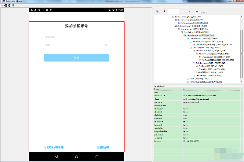 录制模块,顾名思义为录下APK所有界面操作,并保存相应的操作过程,包括延时、点击、输入、滑动等。下面以“邮箱大师”登陆为例讲述主要的技术。