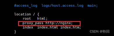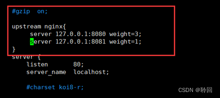 6.2 :vim nginx.conf 进入该文件中进行更改,因为我只创建了两个tomcat 所以只在第一张图 片红框的位置添加了两个