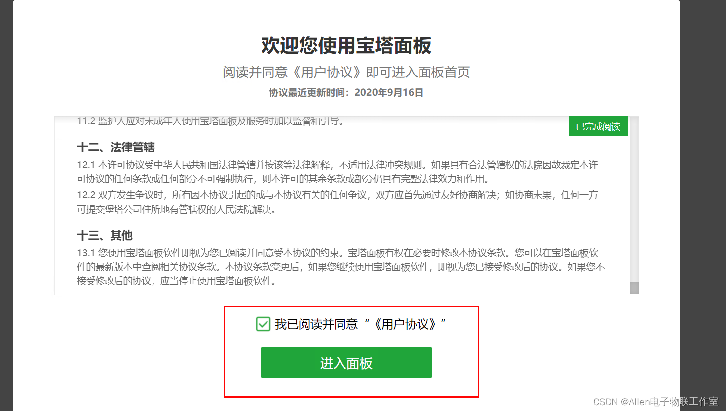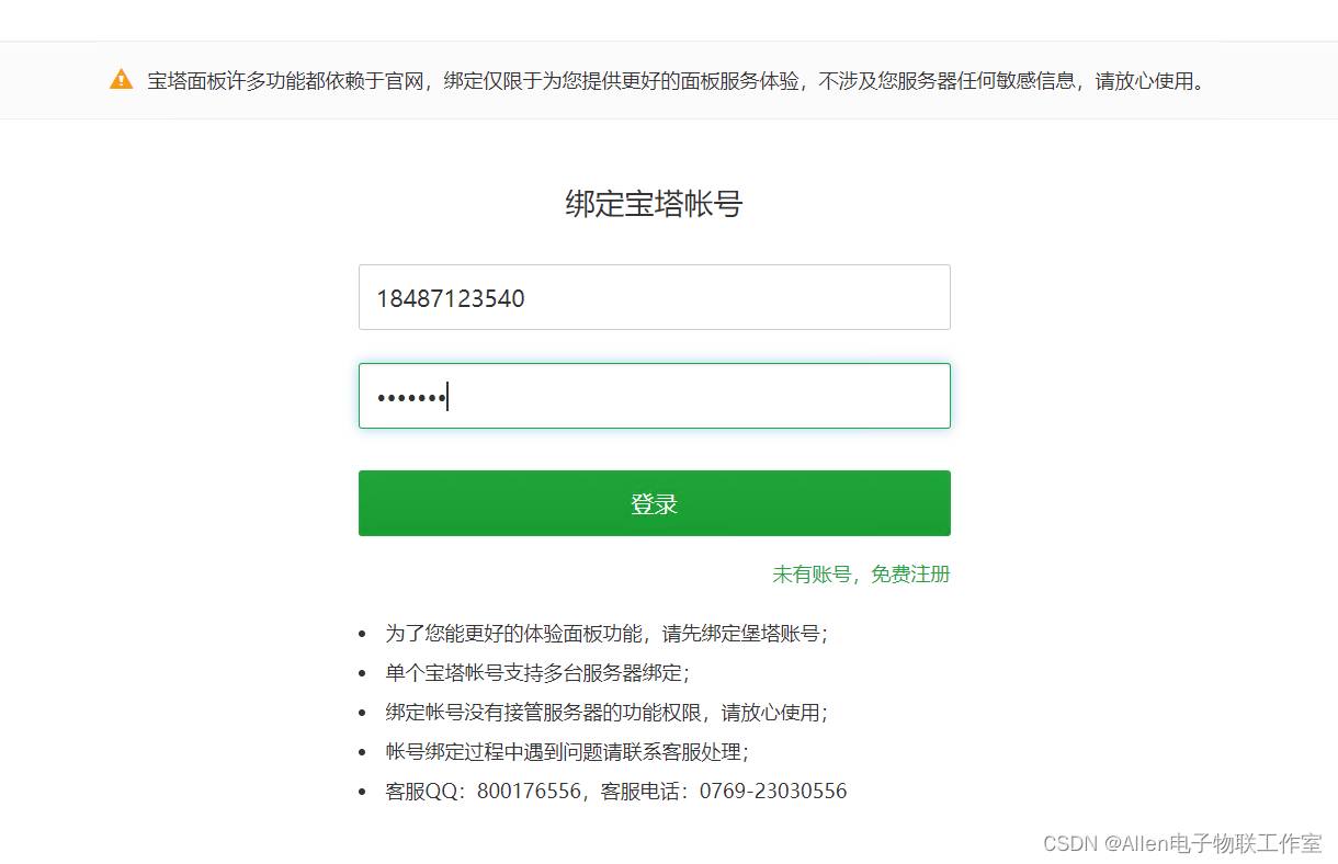 绑定宝塔账号: