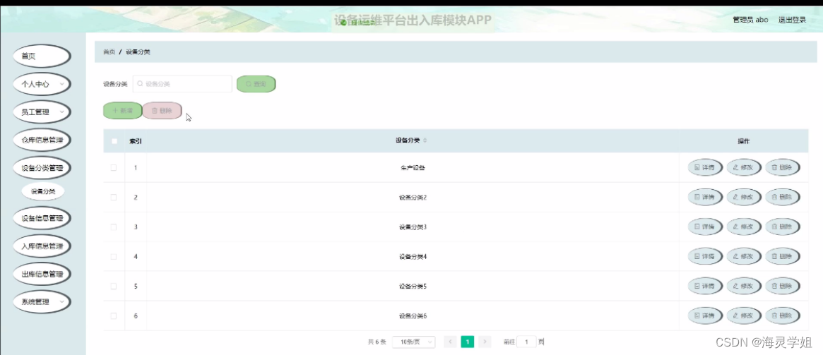 设备分类管理,管理员可在设备分类管理页面进行查询、新增、修改或删除等操作,如图5-12所示。