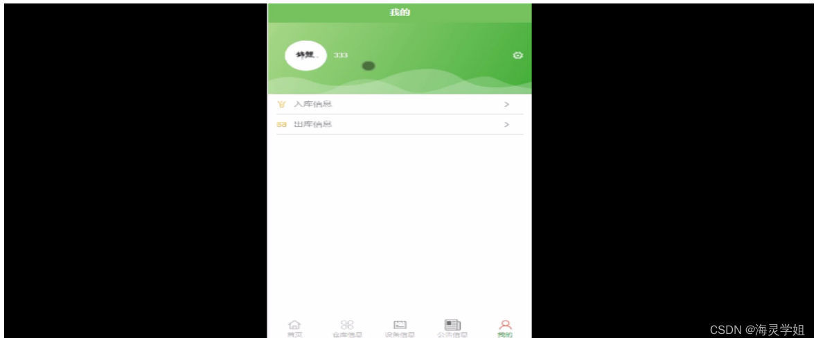 我的,员工可在我的页面查看用户信息、入库信息、出库信息等内容,如图5-3所示。