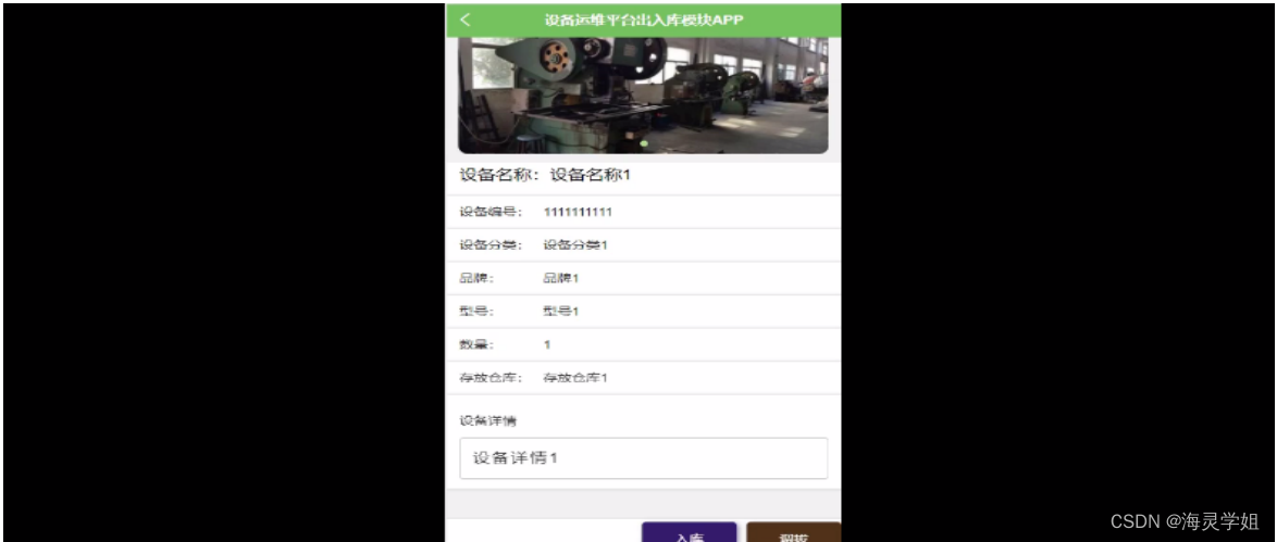 (3)在入库信息、出库信息、设备信息、公告信息页面,管理员有查看详情、修改、删除的权限。