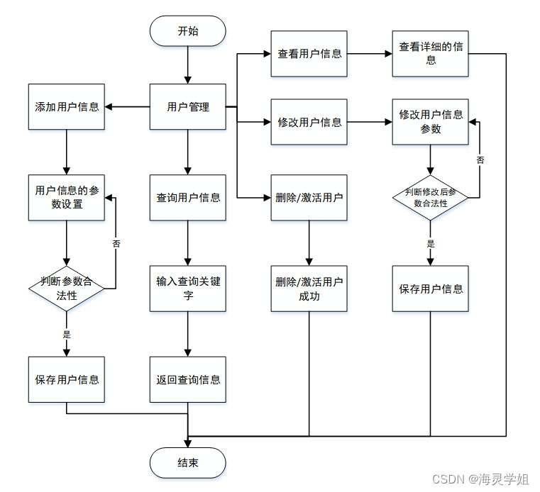 由于不同的系统实际使用用户角色的不同,他们的业务分析也会变得有所不一样,为了论述方便接下来都将以管理员用户功能权限下的系统业务流程来分析,如下图所展示: