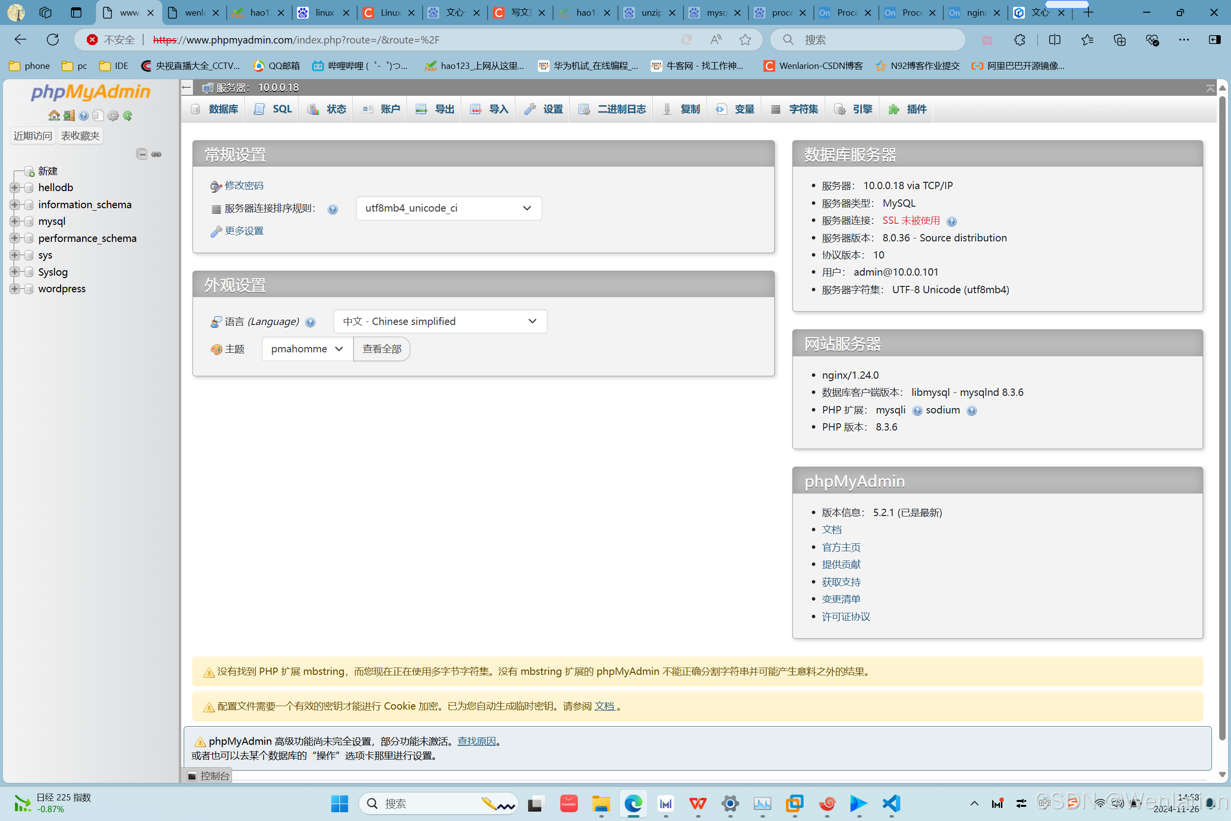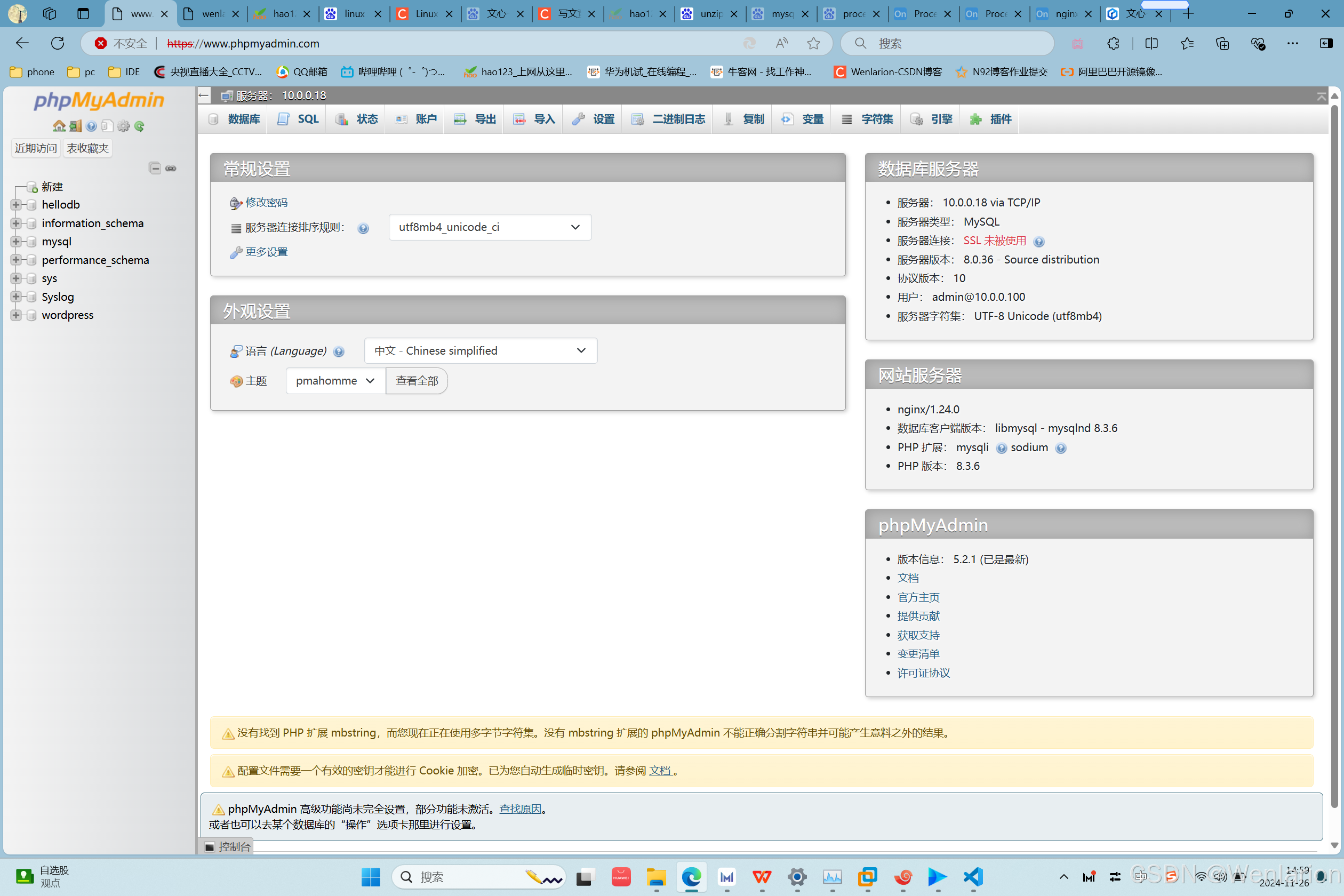 之后,依次访问https://www.wenlarion.com和https://www.phpmyadmin.com,安装wordpress和phpmyadmin,对网页进行测试。