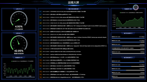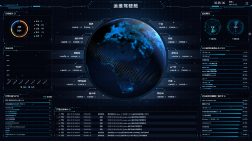 如果说对纯数据无感,那么接下来的运维驾驶舱将在提供统计数据的同时给人带来视觉上的享受。酷炫的3D行星动效将科技感直接拉满,同时提供了监控概况、告警情况、系统负载、各类TOP指标等整体及重点监控信息。