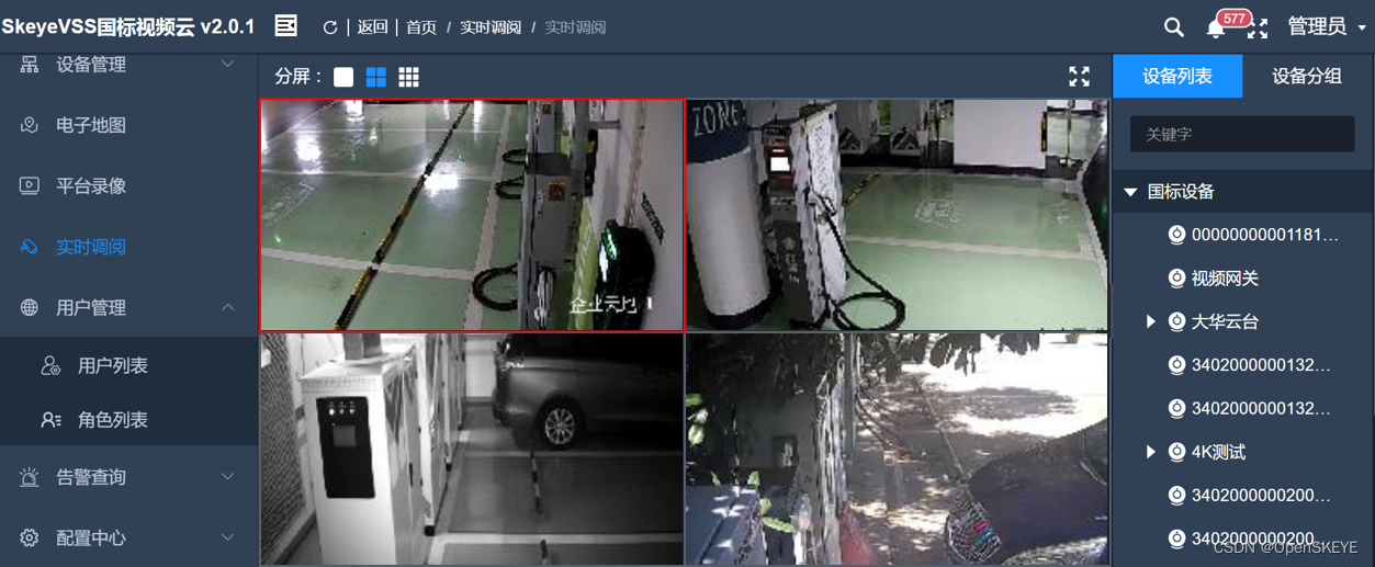 将工厂各区域设备通道的监控画面进行视频直播,管理人员可通过平台进行1、4、9、16分屏及轮巡播放,实现汇聚视频的多画面集中观看。