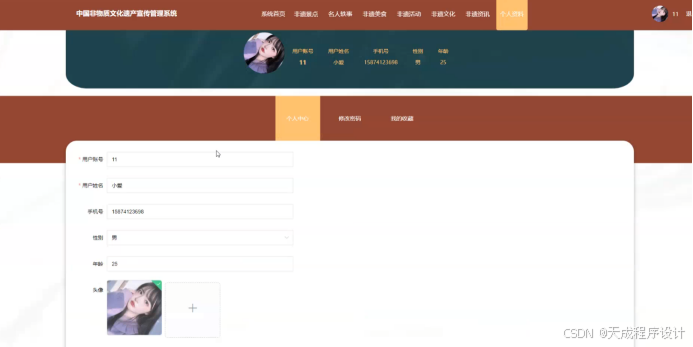传承人信息管理:记录非遗传承人的个人资料、技艺特点和联系方式,方便用户与传承人进行交流和学习。