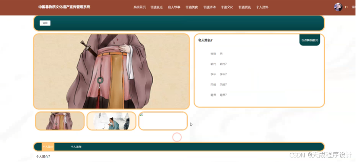 通过这些功能,系统不仅能够有效提升非遗文化的知名度和影响力,还能为非遗保护工作提供有力的技术支持。它将非遗文化的传承与现代科技相结合,为传统文化的创新发展开辟了新的道路。