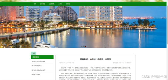 公告栏:在公告栏页面的输入栏中输入标题进行查询,可以查看到公告栏详细信息;并根据需要进行点赞或收藏操作;公告栏页面如图5-4所示: