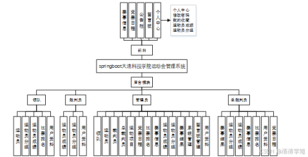 对本系统进行全面的系统功能的分析,可以得出大连科技学院运动会管理系统的功能模块图,如图4-1所示。