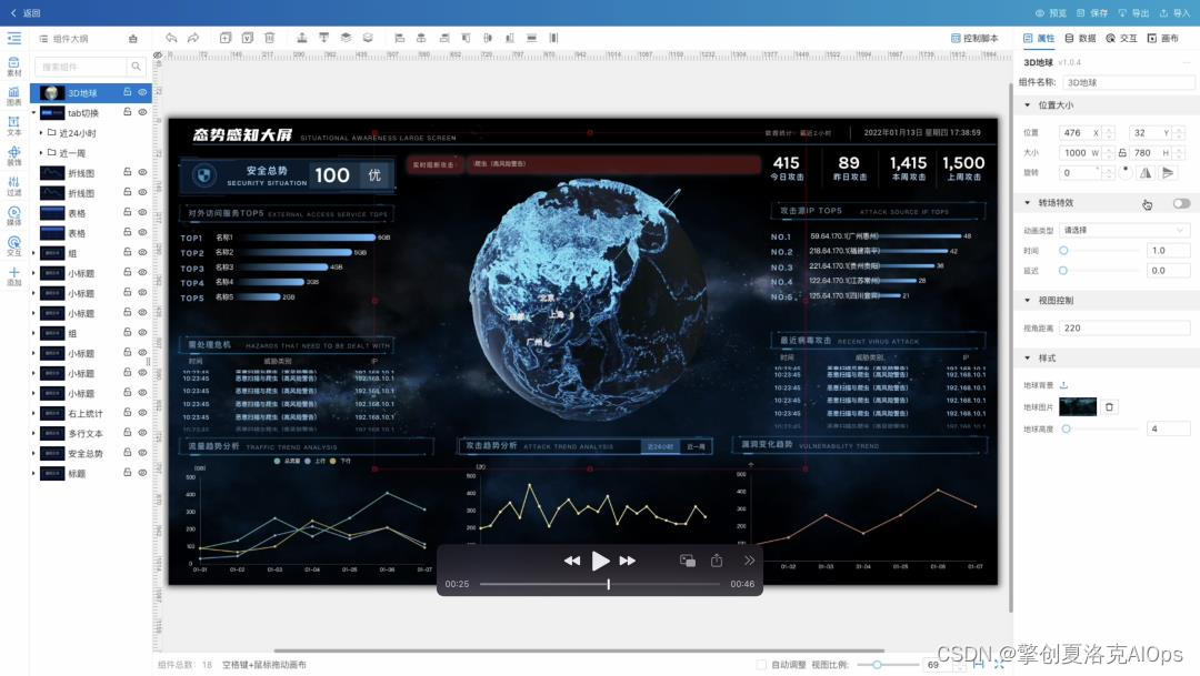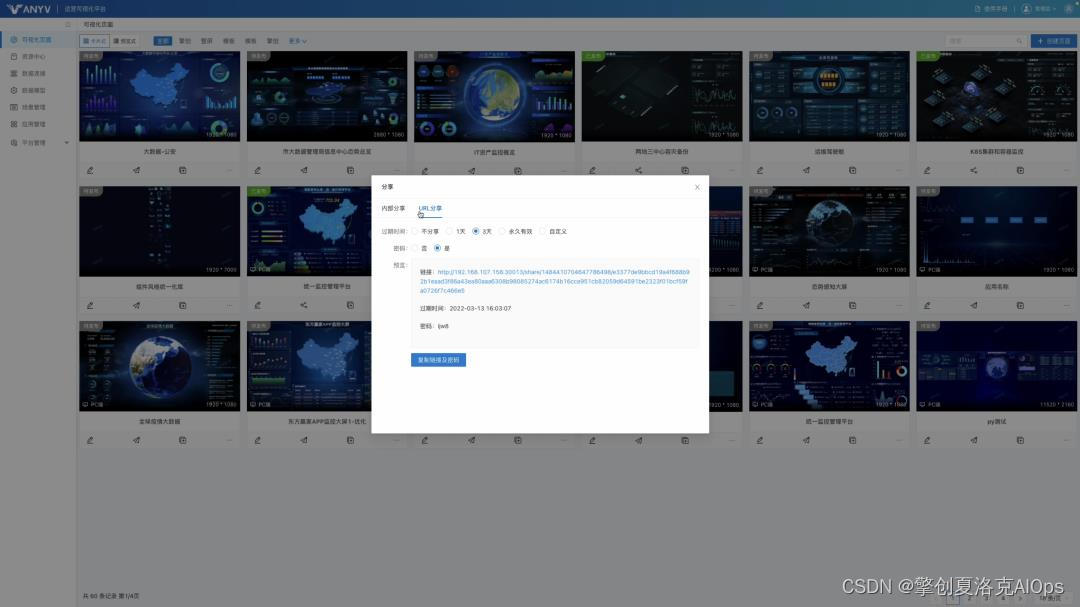 AnyV 运营可视化中心是擎创科技打造的一款跨平台的数据可视化产品。旨在通过简单的图形化界面来帮助客户实现专业级的可视化场景,实现客户在不同运营场景下的灵活、个性的业务展示需求。