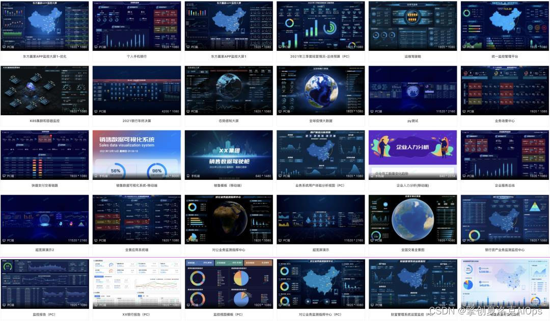 另外,平台内置众多行业大屏模版,满足用户对各类场景的使用需求。