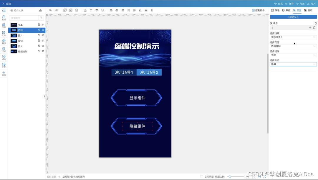 基于产品的可视化配置,可通过移动端页面控制场景切换和显隐弹框,实现平台化多端交互。
