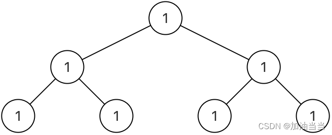 叶子节点为最下面的4个1节点,但是不能直接修剪,只能修剪中间的2个1,修剪掉之后,只有根节点了