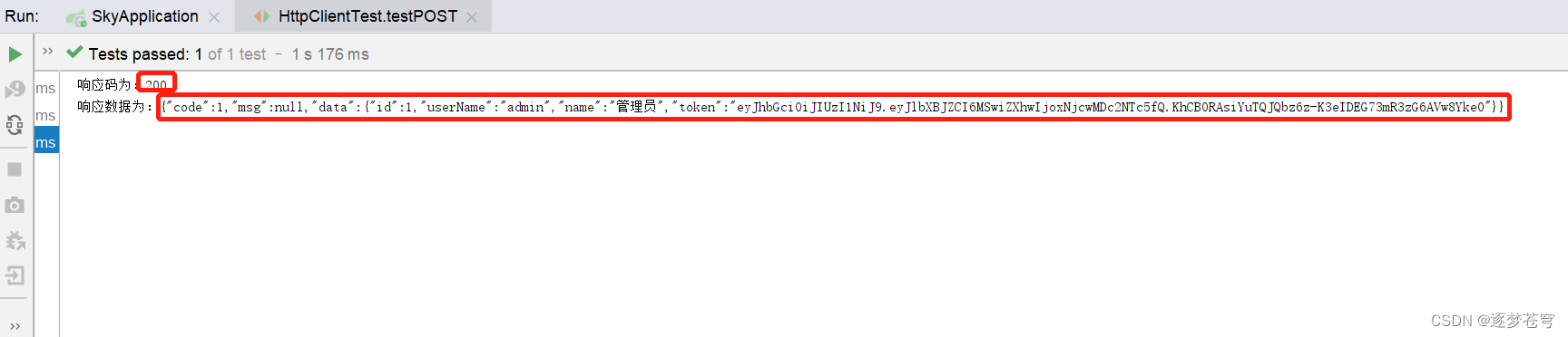 在HttpClientTest中添加POST方式请求方法,相比GET请求来说,POST请求若携带参数需要封装请求体对象,并将该对象设置在请求对象中。
