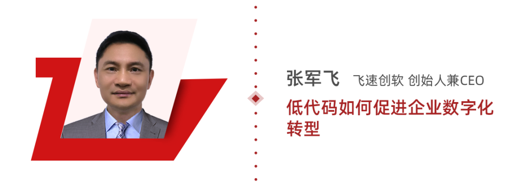 飞速创软创始人兼CEO张军飞表示低代码是一种能能够帮助企业实现业务应用的快速交付,并实现企业技术应用业务部署数据架构的升级。