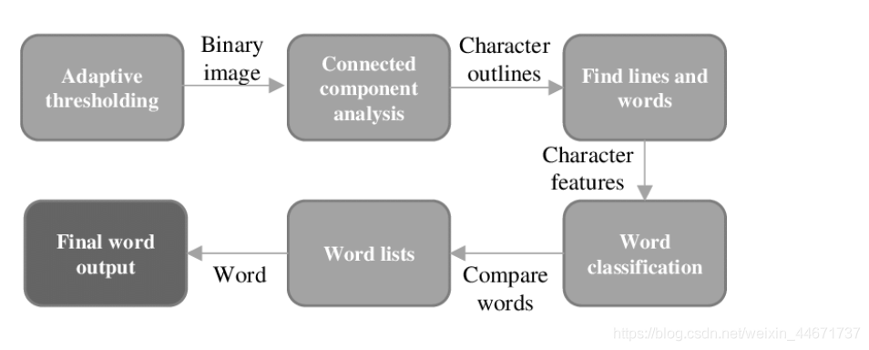 关于tesseract的工作模式如上图所示。假设现在有一个图片输入,整个执行流程为: