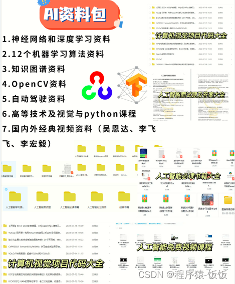 整理了有关人工智能的资料,有图像处理opencv\自然语言处理、机器学习、数学基础等人工智能资料,深度学习神经网络+CV计算机视觉学习(两大框架pytorch/tensorflow+源free免费提供关注公众H:AI技术星球 回复暗号 123