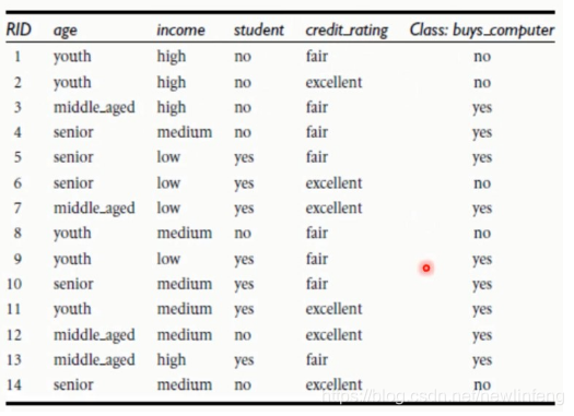 根据age、income、student、credit_rating属性来推断是否会买电脑: