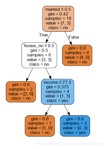 feature_names=['house_yes', 'house_no', 'single', 'married', 'divorced', 'income'],