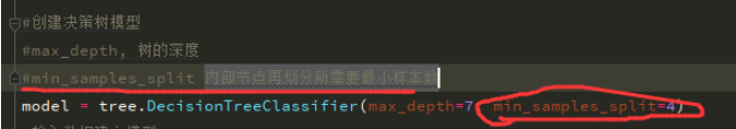(2) 在DecisionTreeClassifier()方法中设置树的内部节点再划分所需要最小样本数min_samples_split