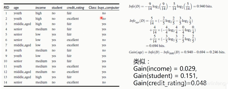 7、决策树的一个例子ID3 algorithm(dataset:是否要购买电脑)+如何画决策树