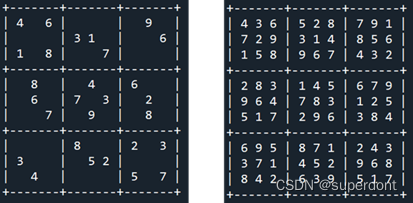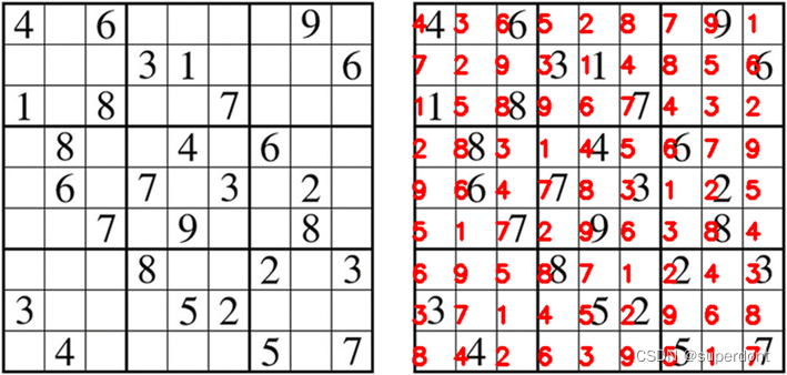 如图6所示图像,其中左侧是待求解数独、右侧是求解结果。