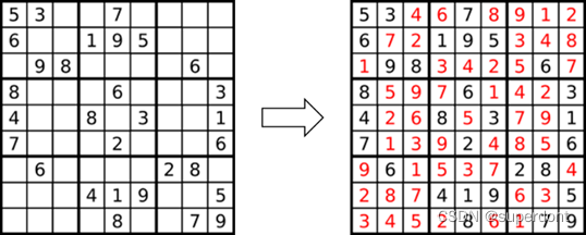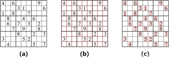 数独是非常流行的一种益智游戏,广受人们的喜爱。如图1所示,数独的目标是根据9×9盘面上的已知数字,推理出所有剩余空格的数字,使每一行、每一列和每一个粗线宫(3*3)内都包含1到9之间的所有数字。数独也被称为“九宫格”游戏。