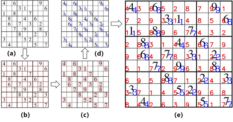 本案例中,我们的关注点在于对一张待求解的数独图像求解,并将求解结果打印在该图像上。主要过程如下: