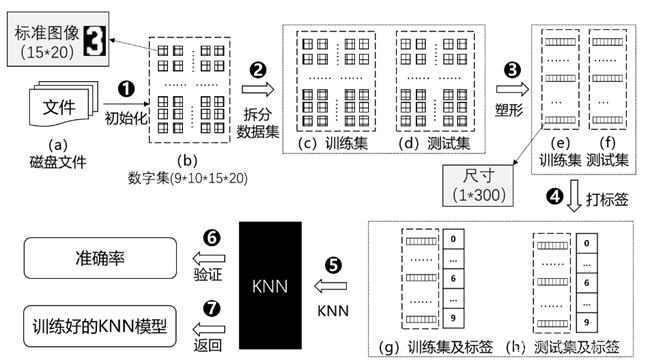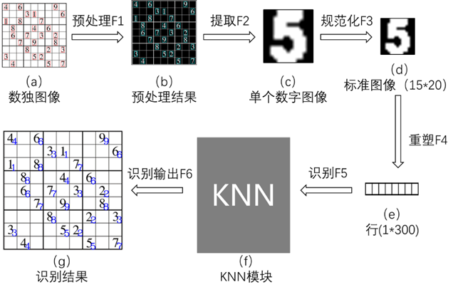 我们构造一个KNN模型用于识别数独图像内的数字。我们将构造模型放在一个函数内,其基本步骤如图4所示,具体如下: