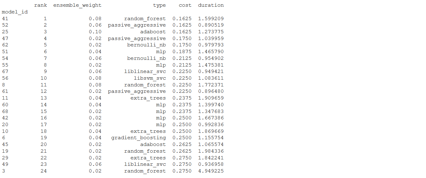 我们还可以使用以下命令为搜索考虑的所有模型打印排行榜